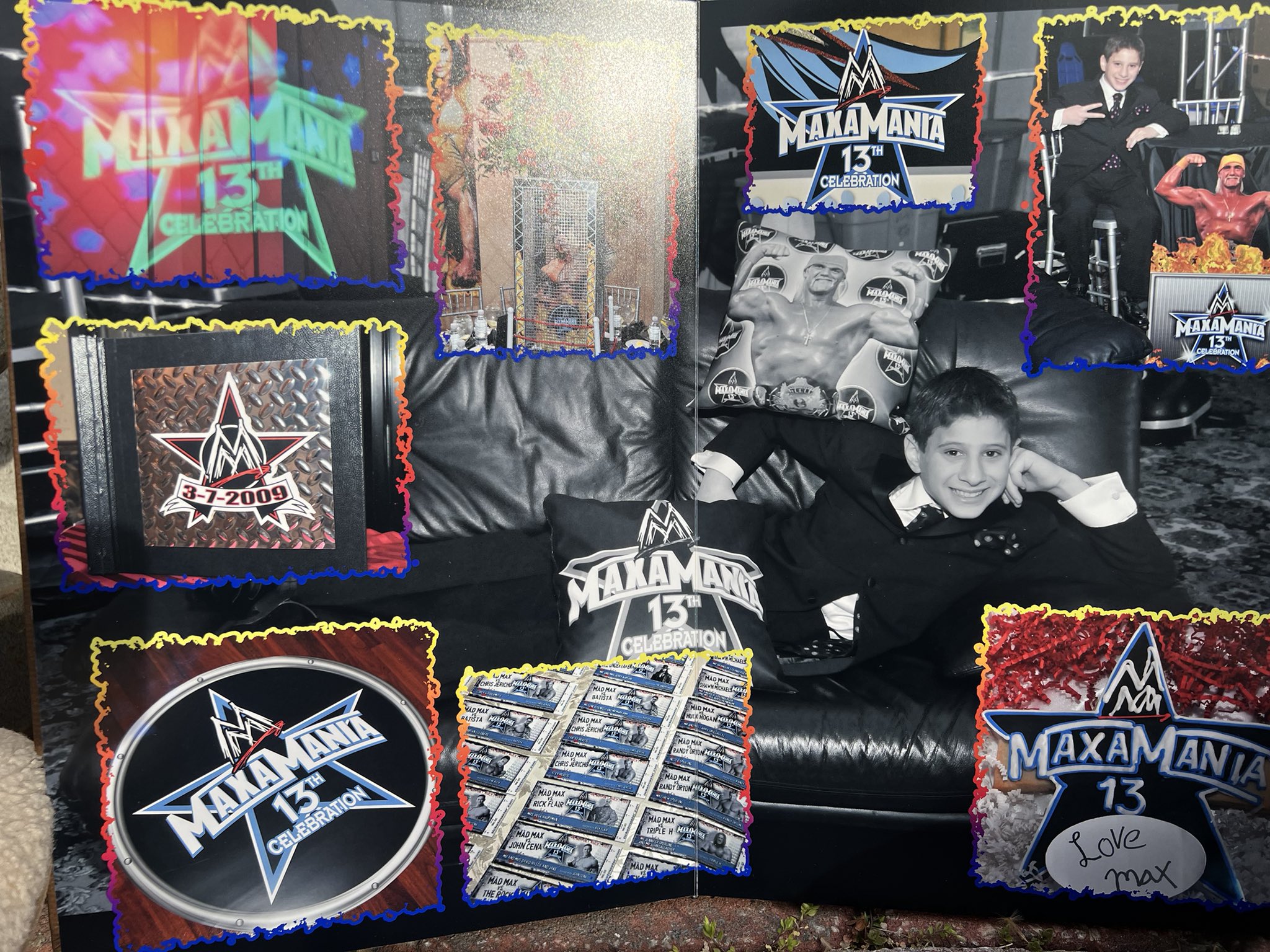 “Maxamania Bar mitzvah circa 2009. (You may notice I invented the upside down logo that was then stolen from me years later. I’ve not sued out of immense respect for said person) Please join us on Wednesday @TBSNetwork at 8pm for my Re Bar mitzvah exclusively on @AEW Party made by @richiehart Follow him on Instagram as well for all your party needs @Richiehartevents”