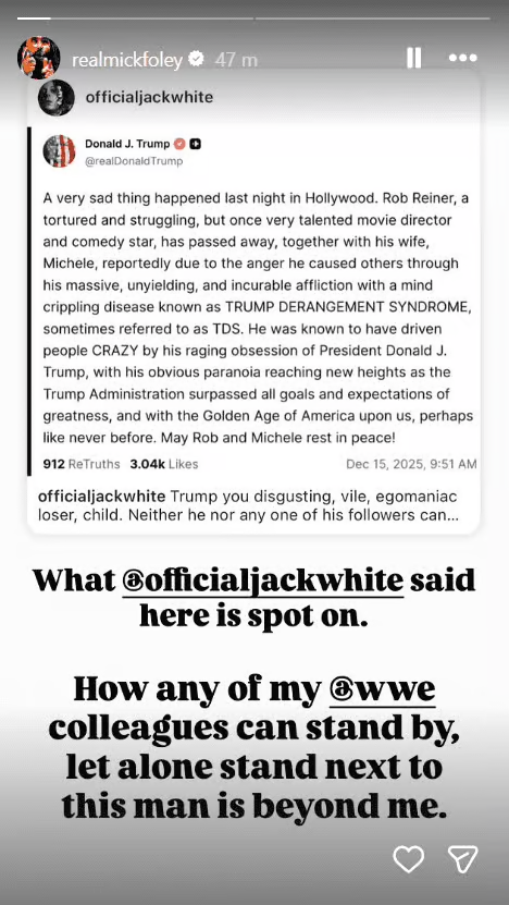 WWE’s Mick Foley, who has been critical of Trump in the past, shared White’s post along with the following message…